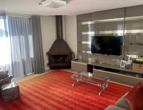 - Sala íntima com lareira e painel para TV, com porta de vidro para sacada;